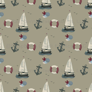Nautical theme, sailboat pattern on taupe coordinates perfectly with my other nautical patterns for home decor, outdoor patio or yacht decor. In classic colors, contact me for other colorways.