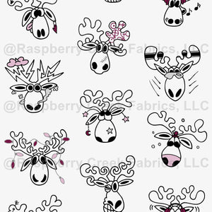 Santas reindeer force diagonals black white red. Comic-style black and white Santa reindeer heads with red highlights. Vertical and diagonal lines. Perfect for holiday projects, décor, quilting, table cloth, napkins, totebags.