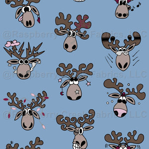 Santas reindeer sleighbell force lineart diagonals blue. Comic-style Santa reindeer heads with red highlights. Vertical and diagonal lines. Perfect for holiday projects, décor, quilting, table cloth, napkins, totebags.