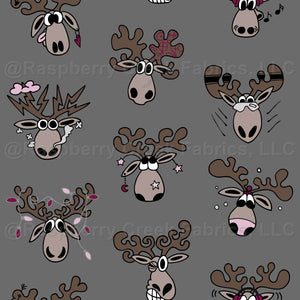 Santas reindeer sleighbell force lineart diagonals gray. Comic-style Santa reindeer heads with red highlights. Vertical and diagonal lines. Perfect for holiday projects, décor, quilting, table cloth, napkins, totebags.