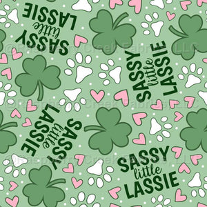 Sassy Little Lassie Shamrocks Hearts and Paw Prints Green