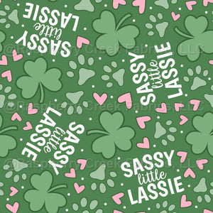 Sassy Little Lassie Shamrocks Hearts Paw Prints Green
