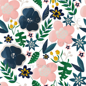 Sassy Pink and Blue Floral Flowers Wallpaper