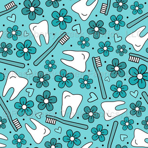 White Teeth and Toothbrushes Aqua Turquoise Blue Floral
