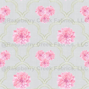 Scalloped Dahlia (on dusty blue) - cottage farmhouse scallop floral
