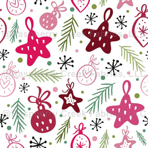 Scandi Winter Doodles Cranberry and Pink Holiday Ornaments