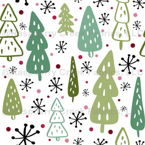 Scandi Winter Doodles Forest Trees and Snowflakes