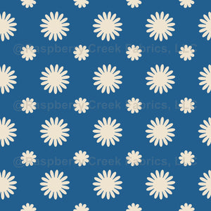 Simple flower silhouette in pearl tan on lapis lazuli blue.