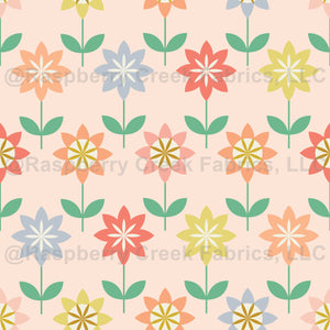 Scandinavian Flowers Rows on Pink {Rainbow Mid Century Modern Flowers}