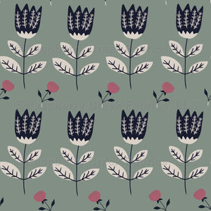 Scandinavian Green Flowers Tulips Minimal Wallpaper