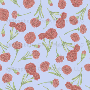 Apart of Erica Catherine's US State Flower Collection, the Scarlet Carnation represents the State of Ohio. The popular Carnation flower is shown on top of a purple color background. The Scarlet Carnation was adopted as the state flower in 1908. The carnation was chosen in honor of the late president William Mckinley who was a Ohioan. He was often seen wearing a scarlet carnation for good luck. Representing love and respect, the scarlet carnation is the most popular cut flower to give. In fact during October to April during homecoming and prom season hundred of thousands of corsages and boutonnieres feature the Carnation. Widely popular as planted flowers across the state they can be found lining state highways, roadways, airports, lawn, gardens painting the landscapes with luxurious reds. One of the most notable places these flowers can be seen is lining the campus of Ohio State University in Columbus. This flower is so well loved that Carnation City, Ohio hold an annual Carnation Festival to celebrate the state flower.