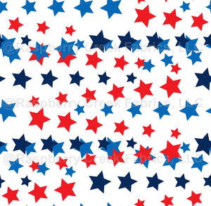 Scattered Red and Blue Stars on White - A Versatile All-American Print for Quilts, Apparel, and Home Decor!
