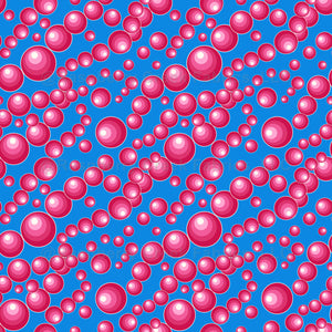Scattered Round Beads Illustration. Magenta and Bright Blue Color Palette. Pattern on Blue background