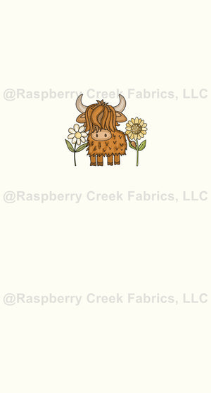 Scottish Highland Cow Sunflower and Daisy Flower Panel on Ivory