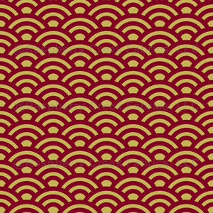 Seigaiha, Waves, Traditional Japanese Pattern, Burgundy and Yellow Gold