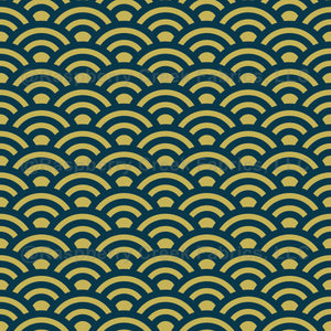 Seigaiha, Waves, Traditional Japanese Pattern, Navy Blue and Yellow Gold