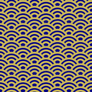 Seigaiha, Waves, Traditional Japanese Pattern, Yellow Gold and Royal Blue