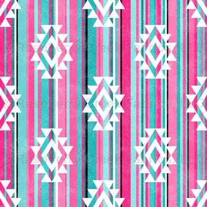 Serape Stripes and Aztec Shapes in Pink and Turquoise Blue