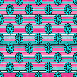 Serape Stripes and Squash Blossoms in Pink and Turquoise Blue