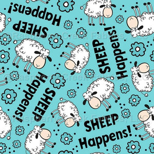 Sheep Happens! Sarcastic White Sheep on Aqua Blue