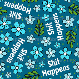 Shit Happens Funny Sarcastic Blue Floral on Turquoise