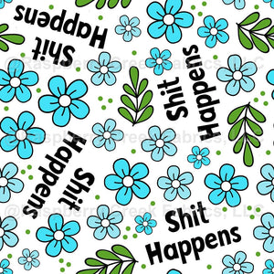 Shit Happens Funny Sarcastic Blue Floral on White