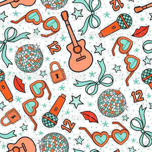 Showgirl Pop Star Album 12 Icons Guitars Bows Locks Disco Balls
