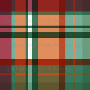 A plaid in showstopping shades of mint green, orange, champagne, and lipstick rouge.