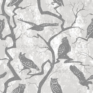 Silhouettes of Owls and Trees - Grey and White