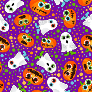 Silly Halloween Ghosts Jackolantern Pumpkins and Polkadots on Purple