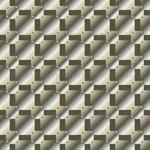Silver green on olive riveted square metal plates in a gradient Industrial texture with metallic shine effect, for steampunk, modern décor, costumes, cosplay, quilting, unique fabric accents and projects.