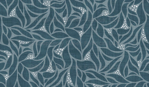 This design features simple abstract leaves with little blue berries and a linen texture.