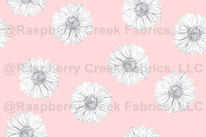simple modern pencil drawn white sunflower flowers in pink
