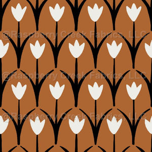 Simple Tulips - rusty Orange, Black and White - Black Forest Collection