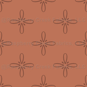 Warm terracotta complements this simple western floral burst design with a classic desert-inspired palette. The repeating petal motif echoes traditional western shapes while keeping a clean, modern look perfect for apparel, accessories, and quilts. This versatile seamless print works beautifully for fall collections, rodeo outfits, and everyday handmade wear.