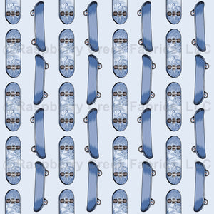 Hand drawn skate boards in various blue tones. Drawn from life, the boards are shown both sides with detail. Simulating lines, this fun pattern is sure to blend with your favourite projects and decor ideas. A smaller design size to the ori