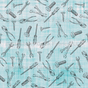 Sketched Tools on Blue & White Linen - large