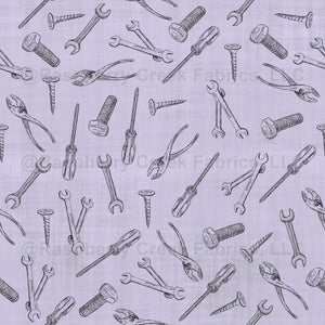Sketched Tools on Light Purple Linen - large