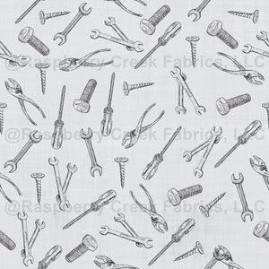 Sketched Tools on Pale Gray Linen - small