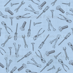 Sketched Tools on Sky Blue Linen