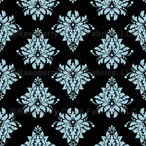 Sky Blue Damask on Black