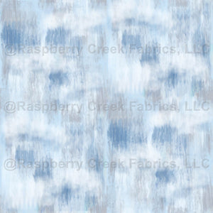 Distressed abstract sky blue print with hints of medium blue and gray.