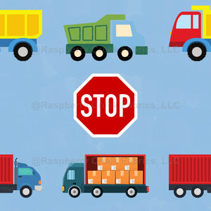 Sky Blue Trucks Fabric, boys nursery design, truck themed fabric, blue fabric, Transportation Collection
