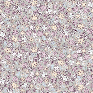Adorable meadow flowers in soft pastel tones on a grey background. Coordinates available in collection.