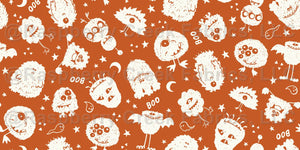 Friendly fluffy Halloween monsters, perfect for playful trick or treat bags, costume lining, and spooky pet accessories.