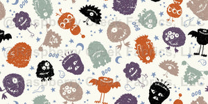Friendly fluffy Halloween monsters, perfect for playful trick or treat bags, costume lining, and spooky pet accessories.