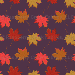There is a larger scale version of this print where the print is increased by 50%. It is labeled Large Scale Maples Leaves on Purple Fabric.