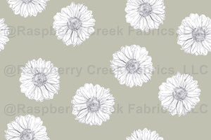 simple modern pencil drawn white sunflower flowers in ashgreen