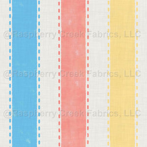 Soft watercolor vertical stripes with playful faux-stitch dotted lines…an easy coordinate for bright summer projects.