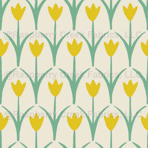 Small Tulips Yellow and Green on Off White - ForestMagic Collection